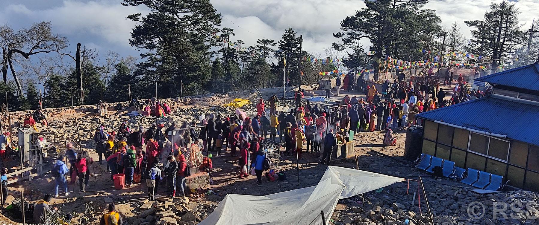 -2 ताप्लेजुङ । ताप्लेजुङको प्रसिद्ध धार्मिकस्थल पाथीभरा मन्दिरमा दर्शन गर्न बसेका भक्तजनहरु । तस्वीर: रासस/दिलकुमार लिम्बू
