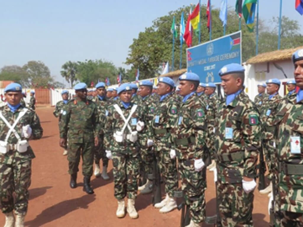 काठमाडौँ । संयुक्त राष्ट्रसङ्घको आह्वानमा दक्षिण सुडानमा तैनाथ हुन प्रमुख सेनानी सरोज राणाको नेतृत्वमा चन्दननाथ गणको आठौं डफफाको पहिलो शान्ति सेना टोली मङ्गलबार त्यसतर्फ प्रस्थान गरेको छ ।