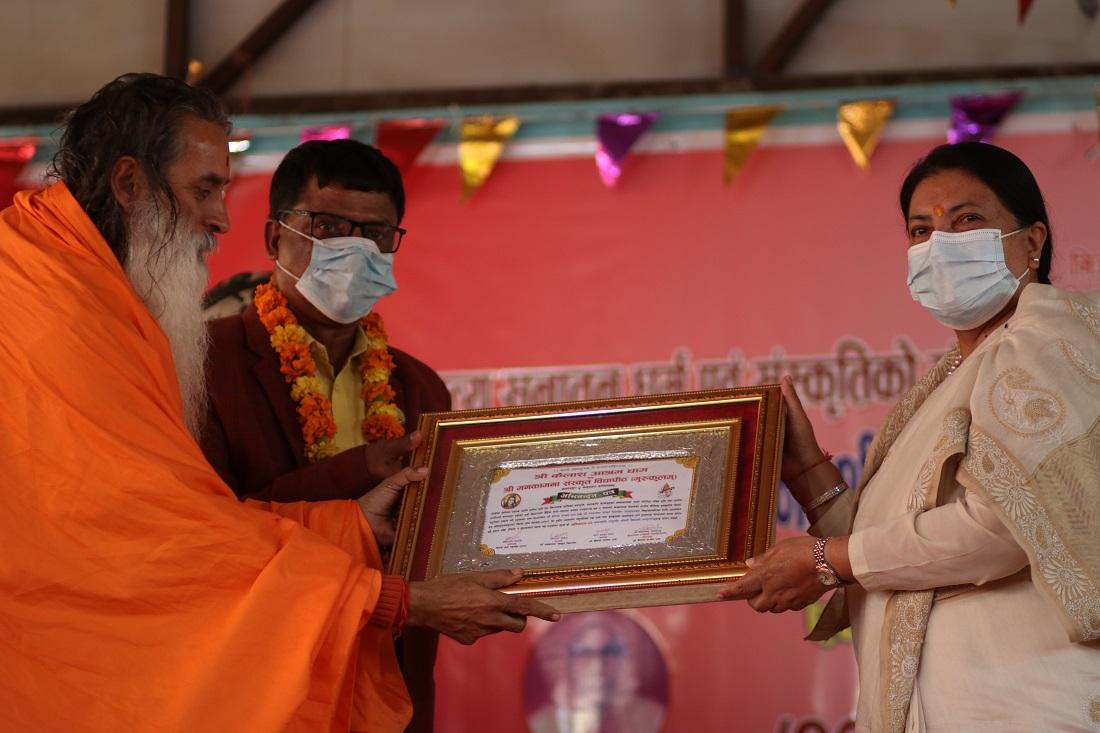 कपिलवस्तुको बाणगंगा–२ नन्दनगरस्थित कैलाश आश्रमद्वारा आयोजित २७ औँ धनधान्याञ्चल महायज्ञलाई सम्बोधन उनी कपिलवस्तु आएकी हुन् । १२७ फिट अग्लो ज्योर्तिलिंगको शिलापुजन, महायज्ञमा निर्माण गरिएका दुईवटा प्रवेशद्वार, अष्टचिरञ्जीवी मूर्ति र विश्रामलयको अनावरण गरेकी राष्ट्रपति भण्डारीले आश्रम परिषरमा रहेको दुर्गा मन्दिरको पूजाअर्चनासमेत गरिन् ।