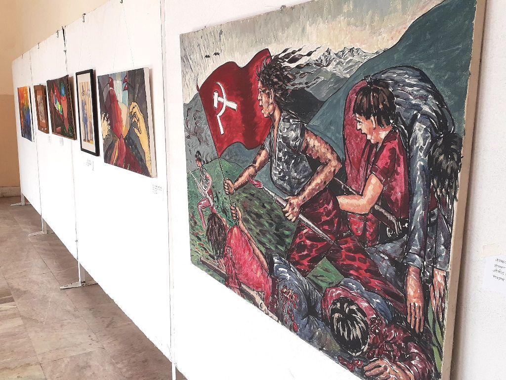 चित्रकला प्रदर्शनीमा नवयुगको आह्वान, गरिब परिवार, हाम्रो अभियान लाल सलाम, वित्तीय पुँजीवाद, द्वन्द्व, गणतन्त्रको गन्तव्य, राजनीतिक संयोजन, देश द्वन्द्व, राष्ट्रिय द्वन्द्व, दलाल पुँजिवाद, रातो मान्छे, महिला विद्रोह, पुँजीवादी दृष्टि, मजदुर, समाजवादका लागि सांस्कृतिक अभियान, क्रान्ति–पवित्रता र शान्ति, समाजवाद यात्राको पदचाप, नायक, ओद्योगिक क्रान्ति र समाजवाद, कृषि क्रान्ति र समाजवाद, उज्यालो यात्रा, दृष्टि, शान्तिका लागि समायोजन, ज्याला, समृद्धिको यात्रा, क्रान्ति, सहिदका सपना, क्रान्तिको विगुल, समानता, श्रम र समृद्धि शीर्षक दिएर पेन्टिङ राखिएका छन् ।