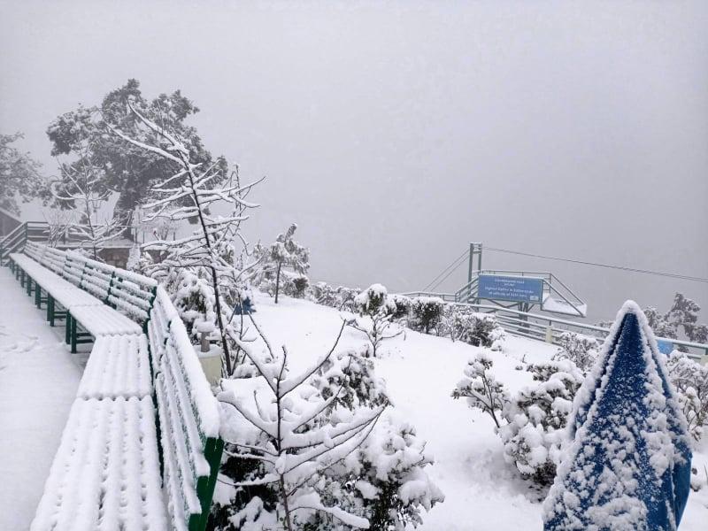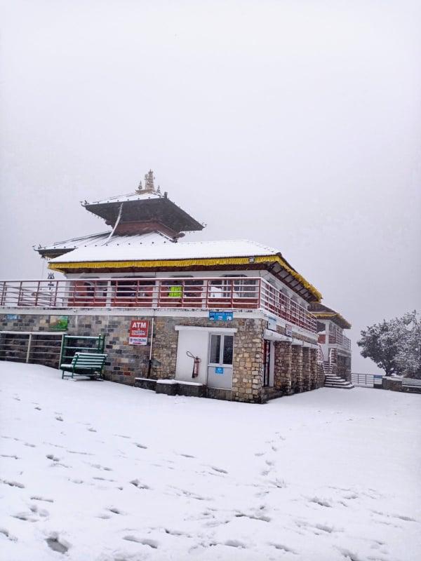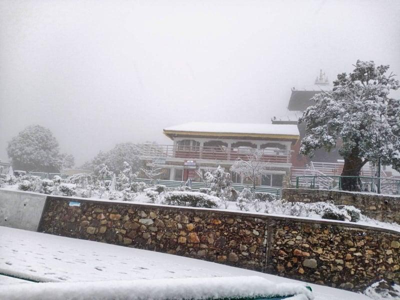 21 काठमाडाैं उपत्यकाकाे चन्द्रागिरिमा बाक्लाे हिमपात भएकाे छ । तस्बिर साैजन्य : चन्द्रागिरिका पूजारी बिदूर खनाल ।