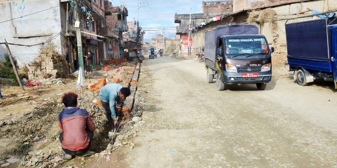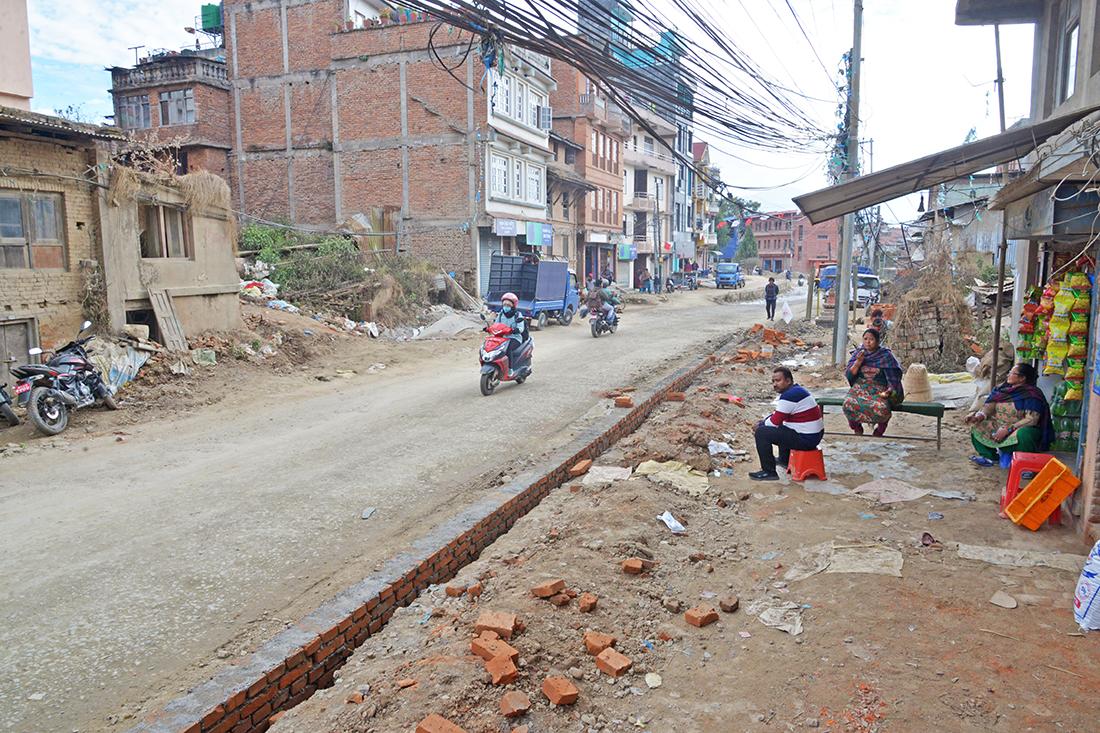 साँघुरो सडक त्यसमाथि बीचबाट महानगरपालिकाले फुटपाथ बनाउने भन्दै पर्खाल लगाएपछि सडकमा सधै जाम हुने गरेकाे छ । उनले भने, ‘जाम भयो भने यहाँका बासिन्दालाई पनि समस्या हुन्छ । महानगरले बुझ्नुपर्ने हो ।’फुटपाथ बनाउन भन्दै महानगरपालिका-२७ का वडाध्यक्ष बाबुराजा महर्जनले फुटपाथ बनाउन काम सुरु गरेको बताएका छन् । सम्पदा क्षेत्र रहेको ठाउँ फोहोर रहेकाले व्लक छाप्न पेटी बनाएको बताए । उनले भने, ‘कालोपत्रे भएको सडकमा पर्खाल लगाएको होइन, अघिल्लो वर्ष पनि यहाँ पर्खाल लगाइएको थियो ।’
