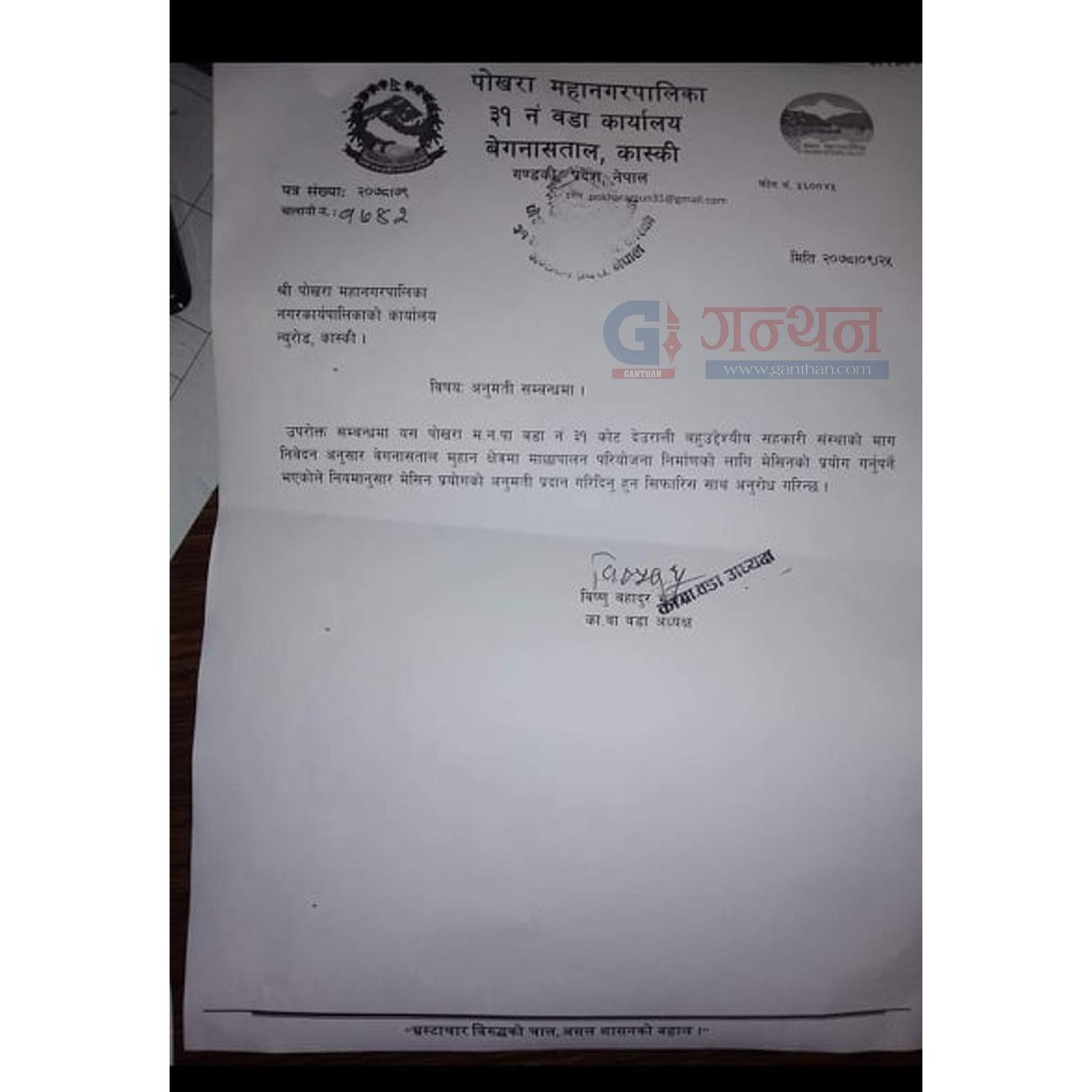 फिल्डमा नै पुगेर वडा अध्यक्षलाई फोन गर्दा जग्गा अतिक्रमणबारे आफुलाई केहि थाह नभएको मन्त्रीलाई बताए यता स्थानियहरुले भने डोजर चलाउन वडाले सिफारिस पत्र देखाउदै पोखरा महानगरले पनि माछापोखरीका लागि केहि रकम सहयोग गरेको बताए ।