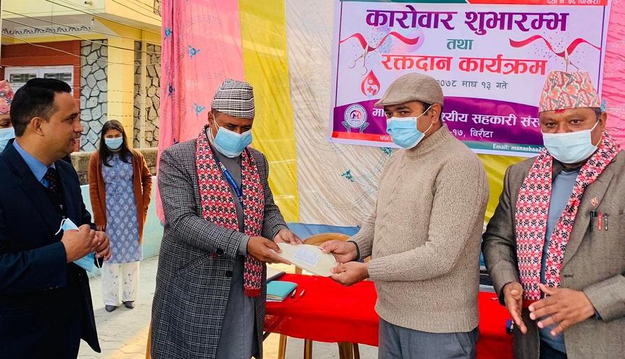 सहकारीको सेवा शुभारम्भको अवसरमा रक्तदान कार्यक्रम पनि आयोजना गरिएको थियो । कार्यक्रमका प्रमुख अतिथि आचार्यले सहकारीका सल्लाहकार शिवप्रसाद सापकोटालाई व्लड ब्याग हस्तान्तरण गरी रक्तदान कार्यक्रमको उद्घाटन गरेका थिए । उक्त अवसरमा १८ जनाले रक्तदान गरे ।