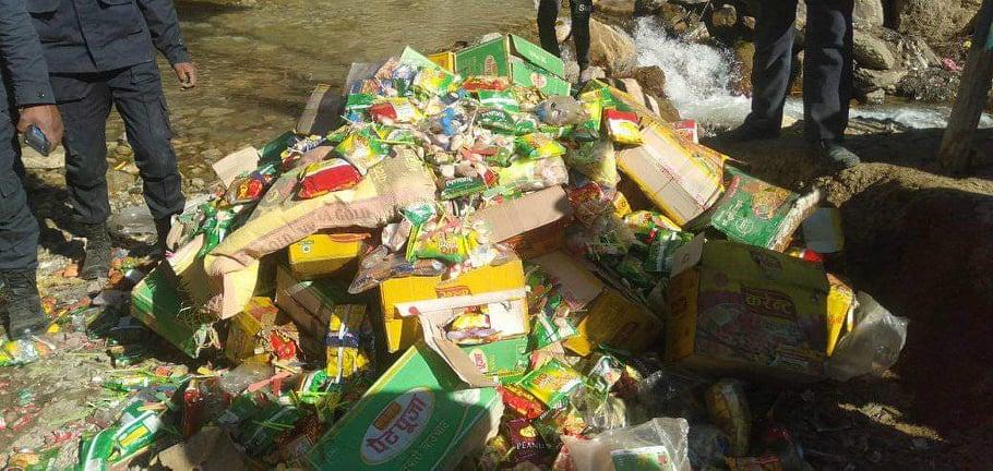 अनुगमन टाेलीले गोटिज्यूला बजारका खुद्रा पसलबाट म्याद नाघेका चाउचाउ, बिस्कुट, चक्लेट, पेय पदार्थलगायत बरादम गरी नष्ट गरेकाे हो । ‘चाउचाउ मात्रै ५८ कार्टुन नष्ट गरिएकाे छ ।’ खाद्यप्रविधि तथा गुण नियन्त्रण कार्यालय जुम्लाका प्राविधिक साहयक भरत रोकायाले भने । उनका अनुसार बालबालिकाले प्रयोग गर्ने मिठाई समेत म्याद नाघेका फेला परेका छन् ।
