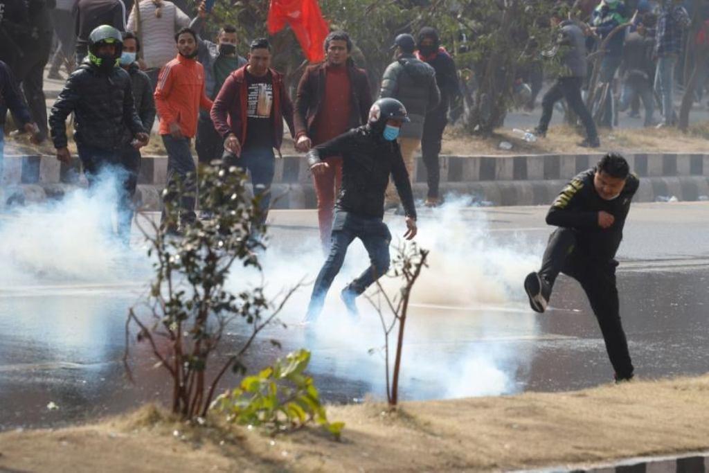 प्रदर्शनकारीले सुरक्षाकर्मीमाथि ढुंगा प्रहार गरेका थिए भने सुरक्षाकर्मीले केही सेल अश्रु ग्यास र पानीको फोहोरा प्रहार गरेका थिए ।