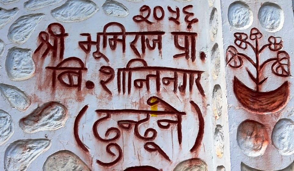 ‘भूवनेश्वरी प्राथमिक विद्यालय’ भनेर भित्तामा लेखिएको छ । अन्त कतै विद्यालयको नाम लेखेको बोर्ड छैन । झट्ट हेर्दा जो पनि विद्यालयनै हो र भनेर झुक्किन्छन् ।