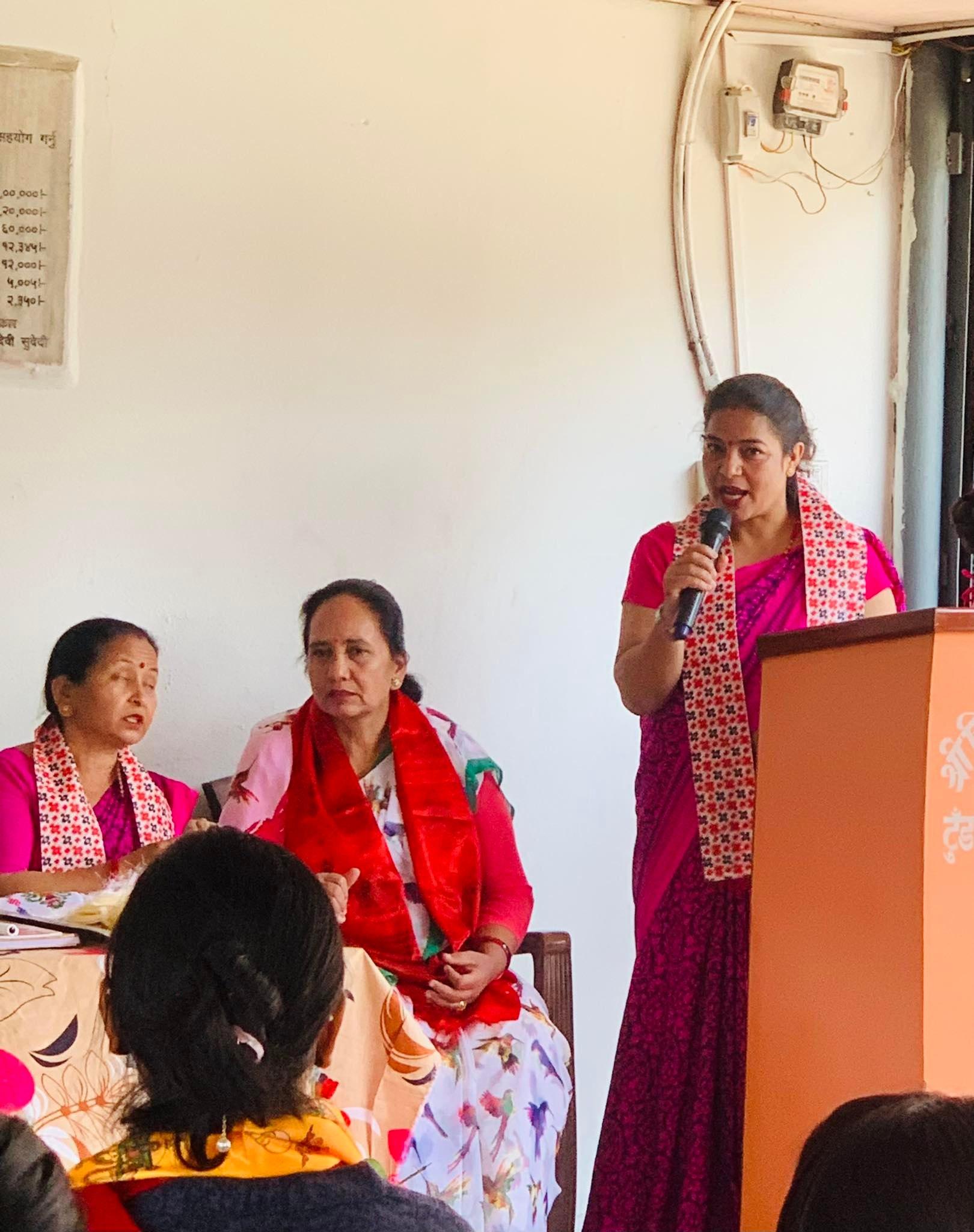 (कार्यक्रममा बोल्दै संस्थाकी अध्यक्ष सिमा कोइराला )