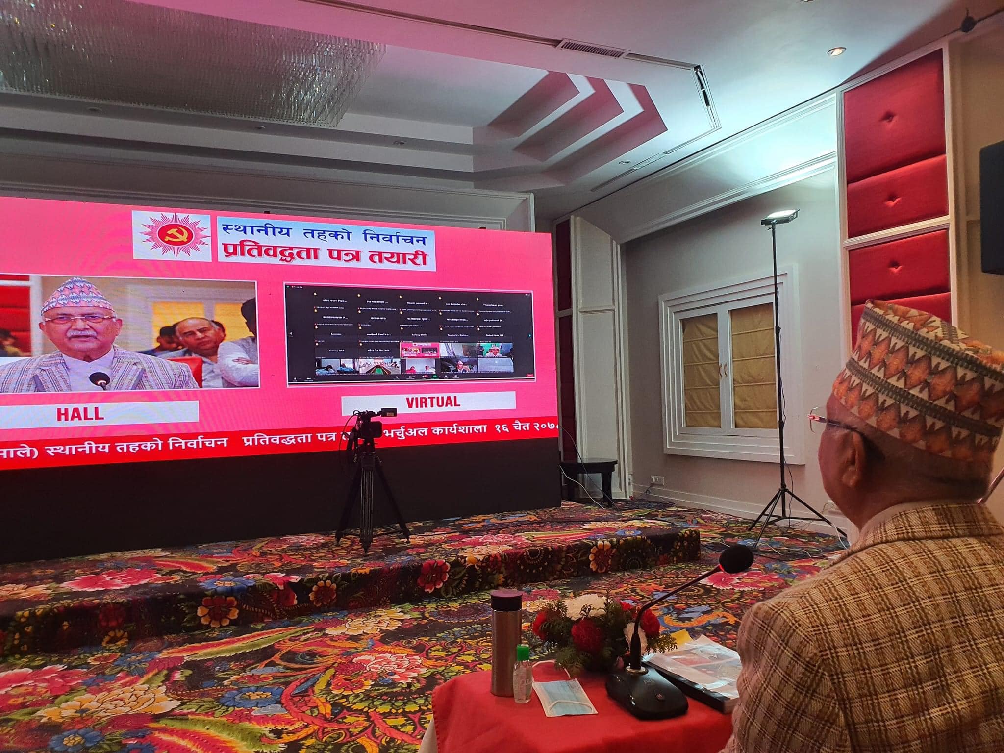 ओलीले विगतका केन्द्र, प्रदेश र स्थानीय तहमा एमालेका सरकारहरूले गरेका गौरवपूर्ण काम लिएर जनतामा जान निर्देशन दिए । एमाले एक पार्टी र अरु सबै एक पार्टी भएकाले कुनै द्विविधाविना निर्वाचनमा होमिन पनि उनले निर्देशन दिए ।