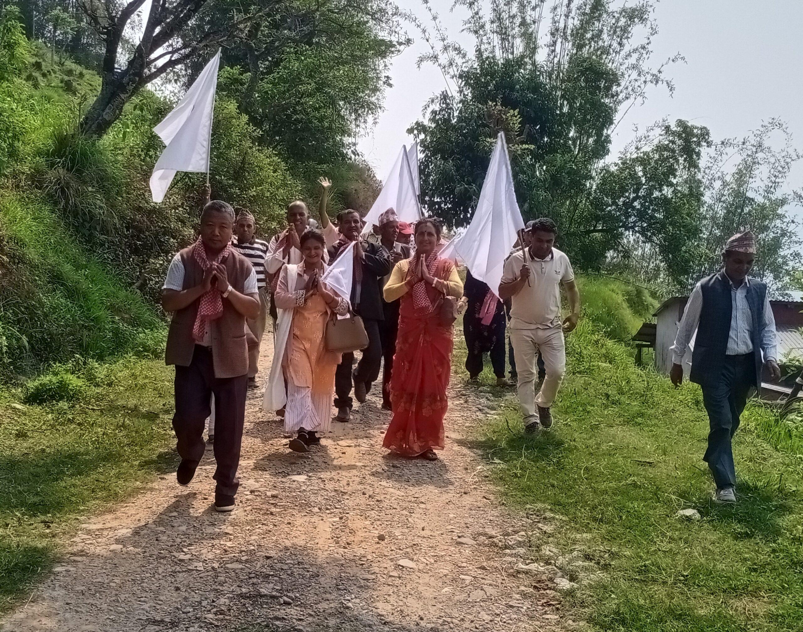बिहीबार आरुपाटामा भएको घरदैलो शुक्रबार काफलघारीमा गरिएको छ । साविक कालिकाको काफलघारी, तमलेक, चितेपानी, पिपलडाँलीमा वडा अध्यक्ष निर्मल दियालीसहितको टोलीले घरदैलो गरिएको तिवारी बताए । शनिबार साविक माझठानाको पात्ले, नौरु, बेतयानीमा उम्मेदवारसहित घरदैलो गरिने एमालेले बताएको छ ।