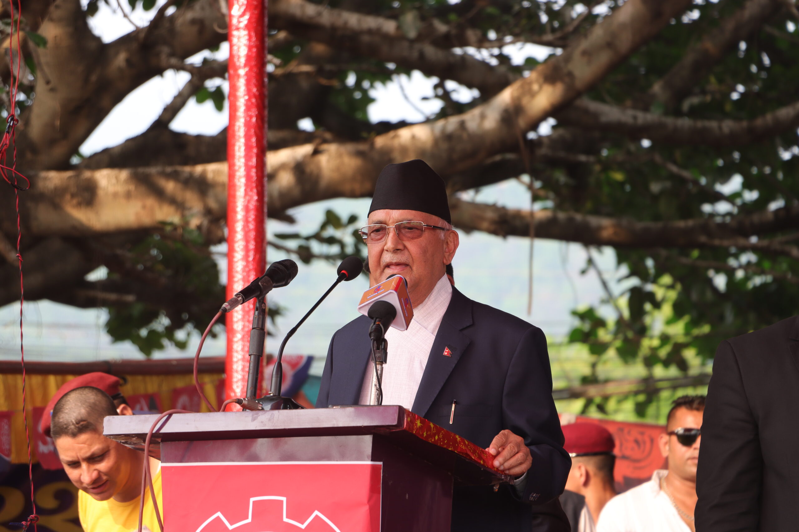 ‘लुतो धेरै ठूलो घाउ त हैन तर जताततै चिलाइरहन्छ’, उनले भने, ‘अहिलेको गठबन्धन पनि त्यस्तै हो, काम गर्दैन ओली र एमालेलाई गाली मात्रै गरिरहन्छ ।’ उनले अहिलेको सरकार खान जन्मिएको आरोप पनि लगाए । ‘अहिलेको सरकारले देशको ढुकुटी मात्र रित्याएको छ,’ उनले भने, ‘एमालेको सरकार हुँदा सात ओटा मन्त्रालयले विकास गरिरहेको थियो । अहिलेको सरकार आउने बित्तिकै १८ वटा मन्त्रालय पुर्याएको छ ।’ गठबन्धनले स्थानीय तहको निर्वाचन हुन नदिन धेरै षड्यन्त्र रचेको उनको आरोप छ । ‘सरकारले फागुन महिनाभित्रै स्थानीय तहको निर्वाचन गराउनुपर्ने थियो, गठबन्धन अहिले पनि चुनाव बिथोल्न लागिपरेको छ ।’
