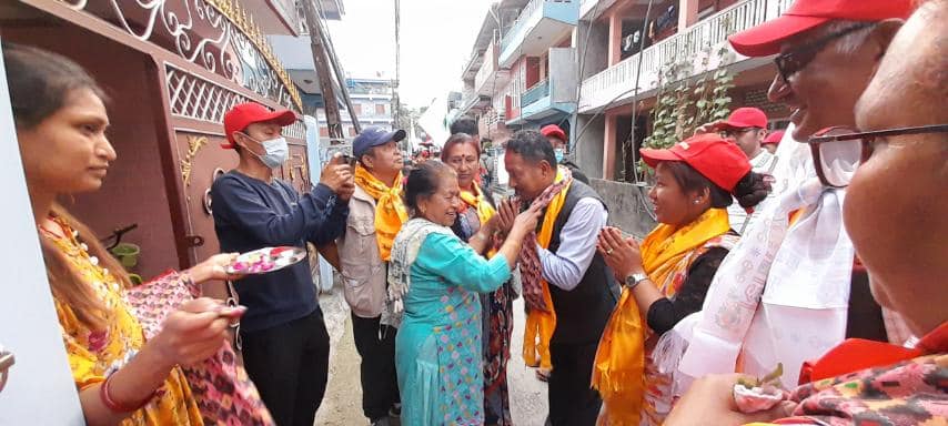बिहिबार शान्तीटोलमा भएको घरदैलो अभियानमा अध्यक्षका उम्मेदवार साहारा प्रधानले गरिविको रेखामुनी रहेका निम्न आय भएका बिपन्न परिवारले उपचार नपाएर मर्नुपर्ने अवस्था अन्त्यका लागि योजना बनाएर काम गर्ने बताए । प्रधानले आँफुले बिपन्नहरुको उपचारमा सहजिकरणका लागि बिपन्नहरुलाई वडा कार्यलयले जिम्मा लिएर निःशुल्क स्वास्थ्य बिमा कार्यक्रम संचालन गर्ने बताए । प्रधानले अव्यबस्थित रुपमा रहेको सुकुम्वासी बस्तीलाई व्यबस्थित बनाउनका लागि कुनै कसर बाँकी नराख्ने बताउँदै लालपुर्जाको लागि भुमि आयोगसँग सहकार्य गरेर अगाडी बढ्ने प्रतिबद्धता जनाए ।