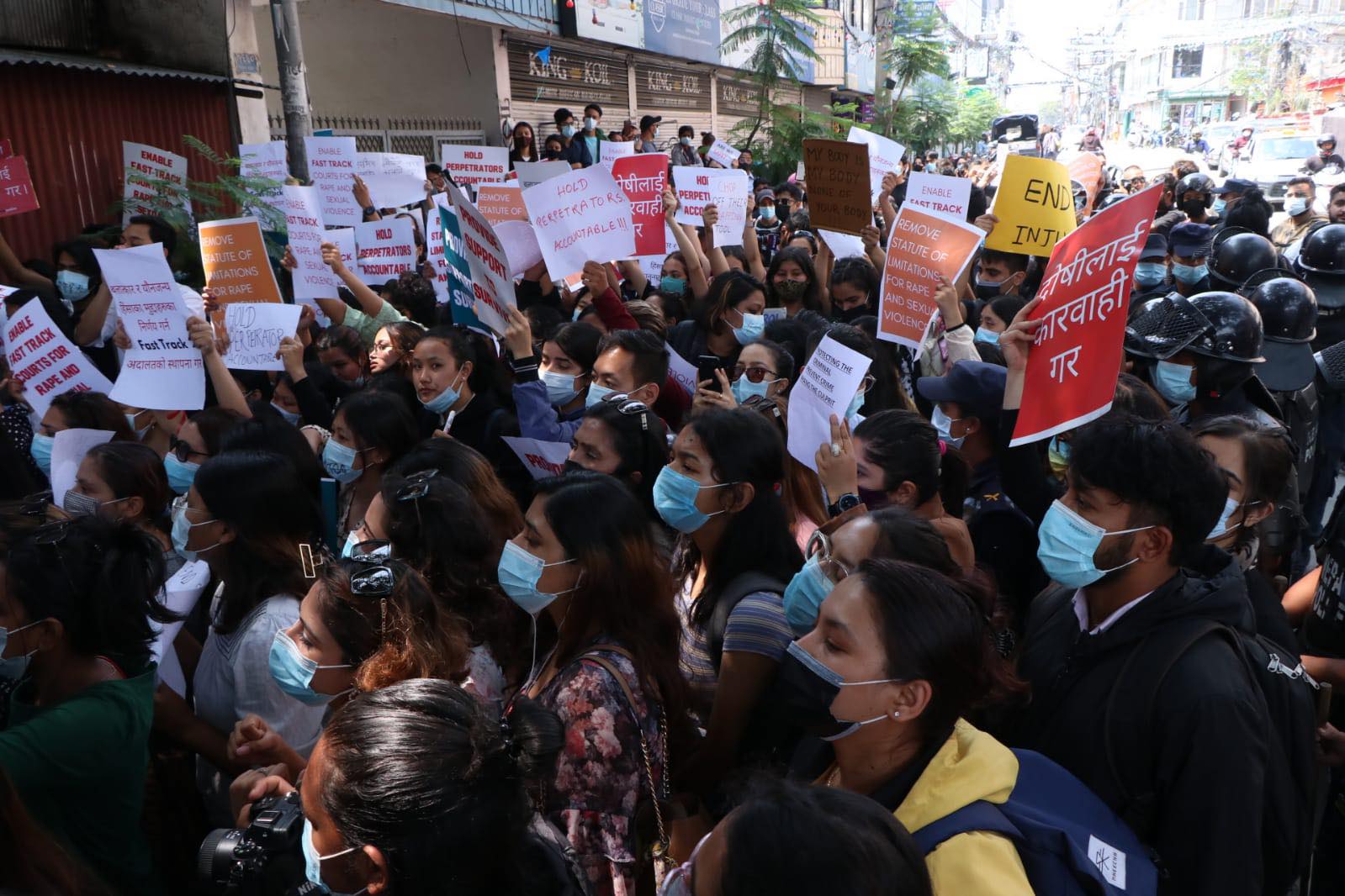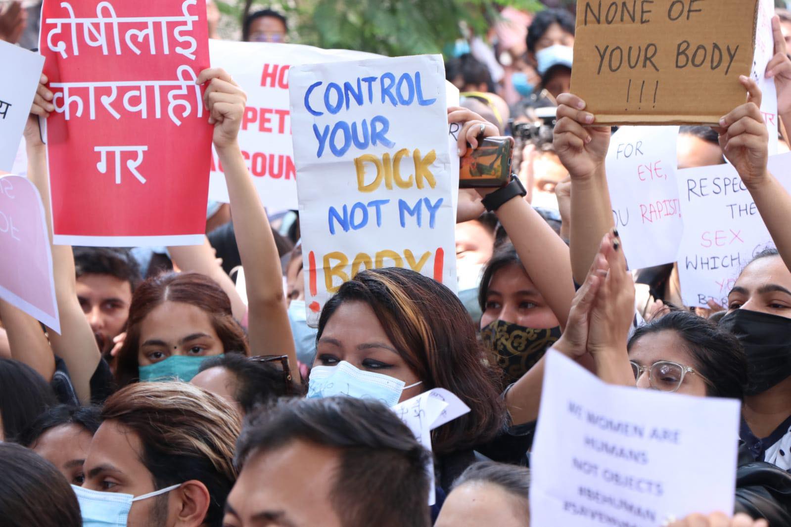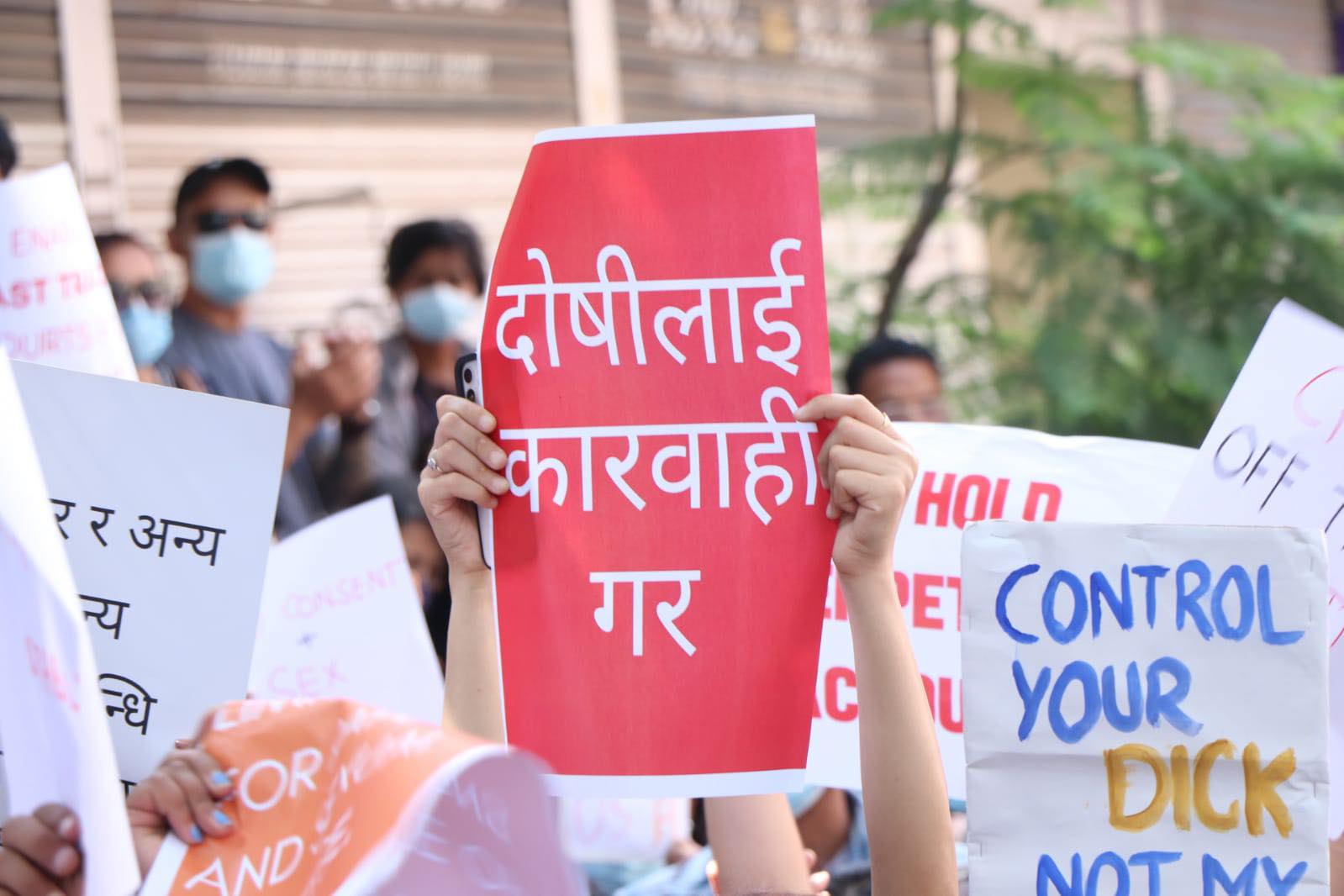 प्रदर्शनकारीले ‘दोषीलाई कारबाही गर, बलात्कार र यौनजन्य हिंसाका मुद्दाहरूको निर्णय गर्ने फास्ट ट्रयाक अदालतको स्थापना गर, बलात्कार मुद्दामा उजुरी गर्नेलाई हदम्याद हटाऊ’लगायत नारा लेखिएका प्लेकार्ड बोकेका थिए ।