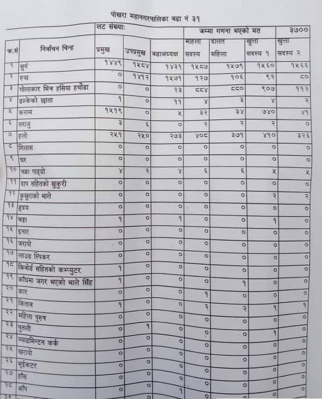 नेकपा एमालेको किल्ला भनेर चिनिएको वडा ३१ मा समाजबादी आचार्यले एमालेका उम्मेदवारलाई ६८ मतले पछि पारेका छन् भने वडा अध्यक्षमा काँग्रेसका कँडेलले १४० मतले पछि पारेका छन् । एमालेका संगठन बिभाग प्रमुखको वडामा नै एमालेको मत कम आउनुलाई चासोका साथ हेरिएको छ ।