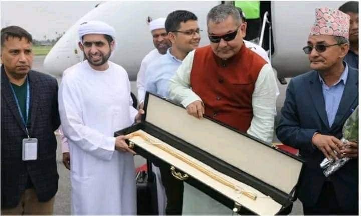 काठमाडौं / संयुक्त अरब इमिरेट्स (युएई) का राजकुमार शेख मोहम्मद माक्तुम जुमा ला माक्तुमले मेडिकल व्यवसायी तथा एमाले केन्द्रीय सदस्य दुर्गा प्रसाईंलाई उपहार दिएको ‘सुनको लौरो’ बारे रहस्यको खोजी भइरहेको छ ।
