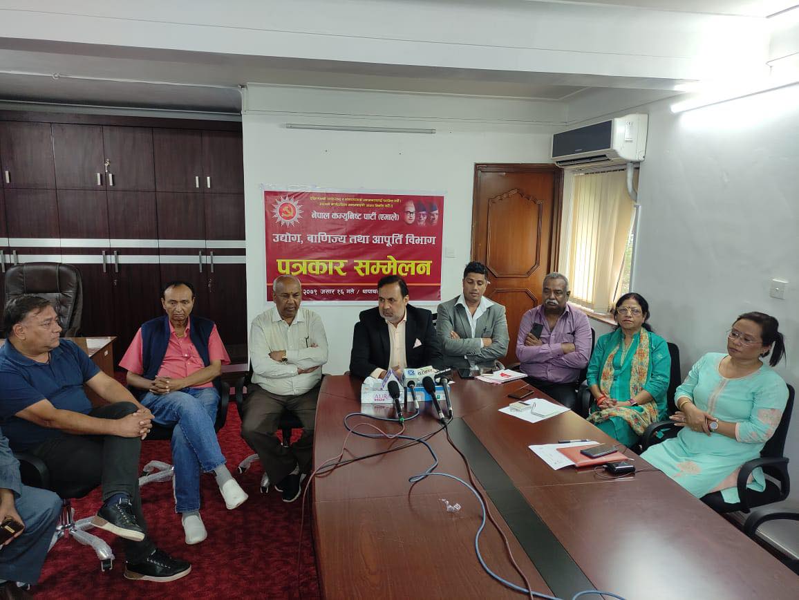 बिहीबार पत्रकार सम्मेलन गर्दै एमालेको उद्योग,वाणिज्य तथा आपूर्ति विभागले मुलुकको आर्थिक संकट, आर्थिक अराजकता र आर्थिक असुरक्षाको अवस्थाका कारण उद्योगी व्यवसायीहरु पीडित हुनु परेको र यस्तो पीडाका बेलामा राज्यले उद्योगी व्यवसायीहरलाई संरक्षण गर्नुपर्नेमा कुनै ठोस सहयोग नगरेको र राज्यले अविभावकीय भूमिका नखेलेर मुकदर्शक बनको भन्दै आपत्ति जनाएको छ । देशको वर्तमान आर्थिक संकटप्रति आफूहरुको गम्भीर ध्यानाकर्षण भएको विभागले जनाएको छ ।