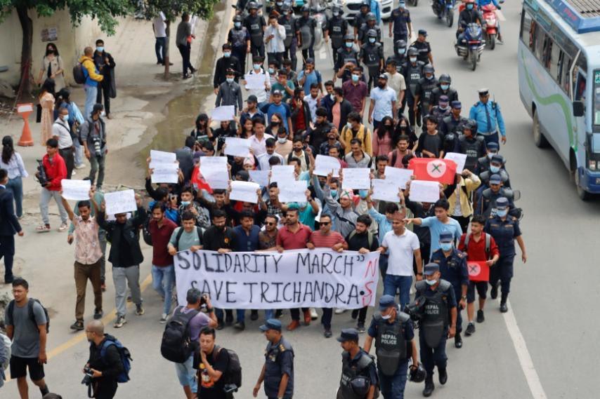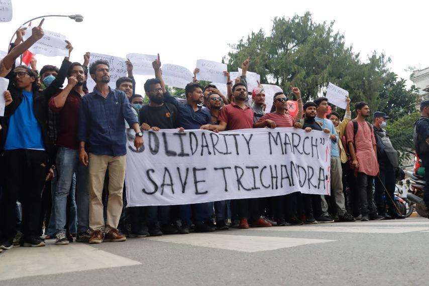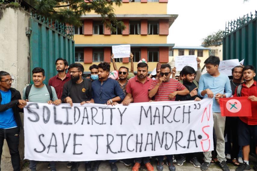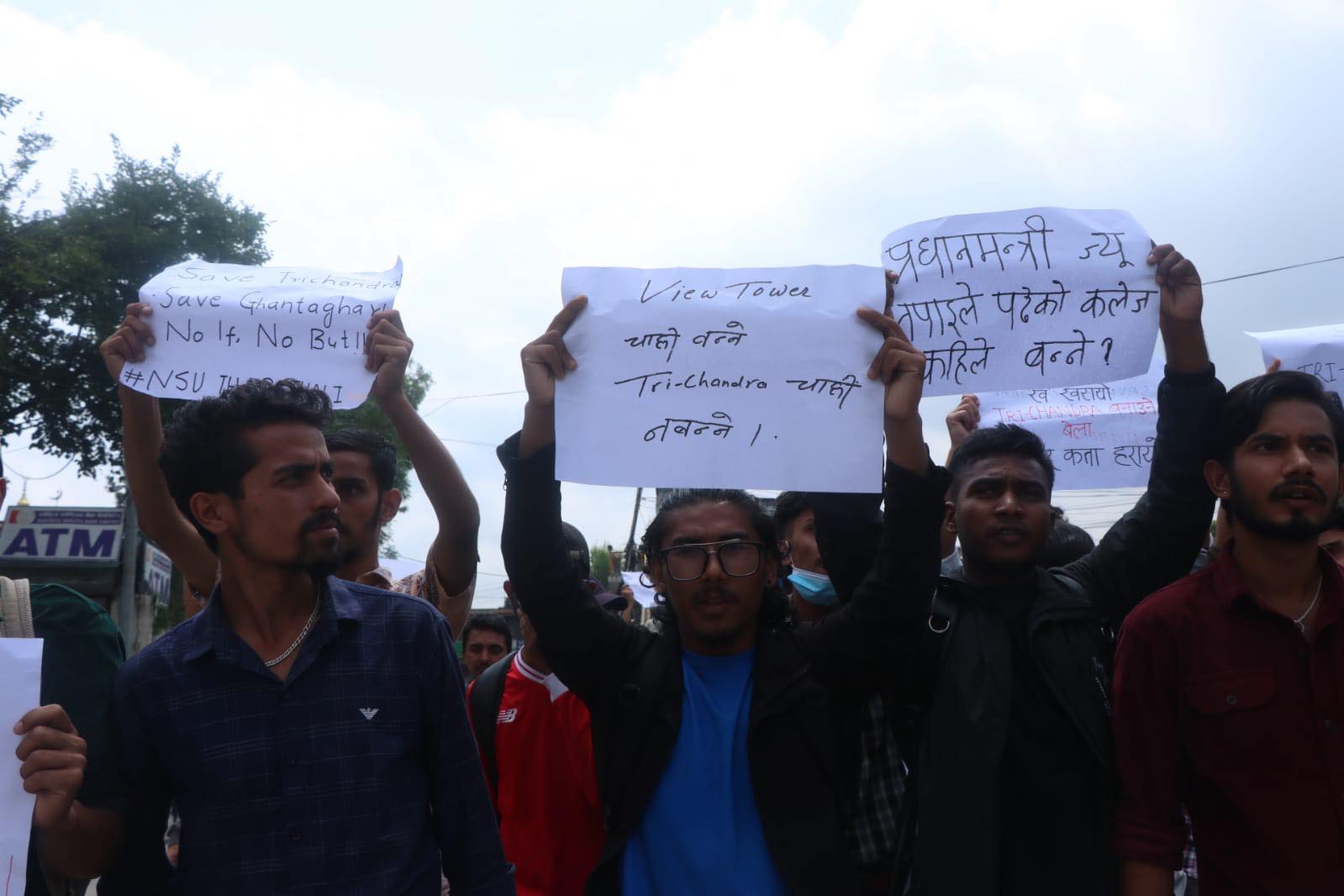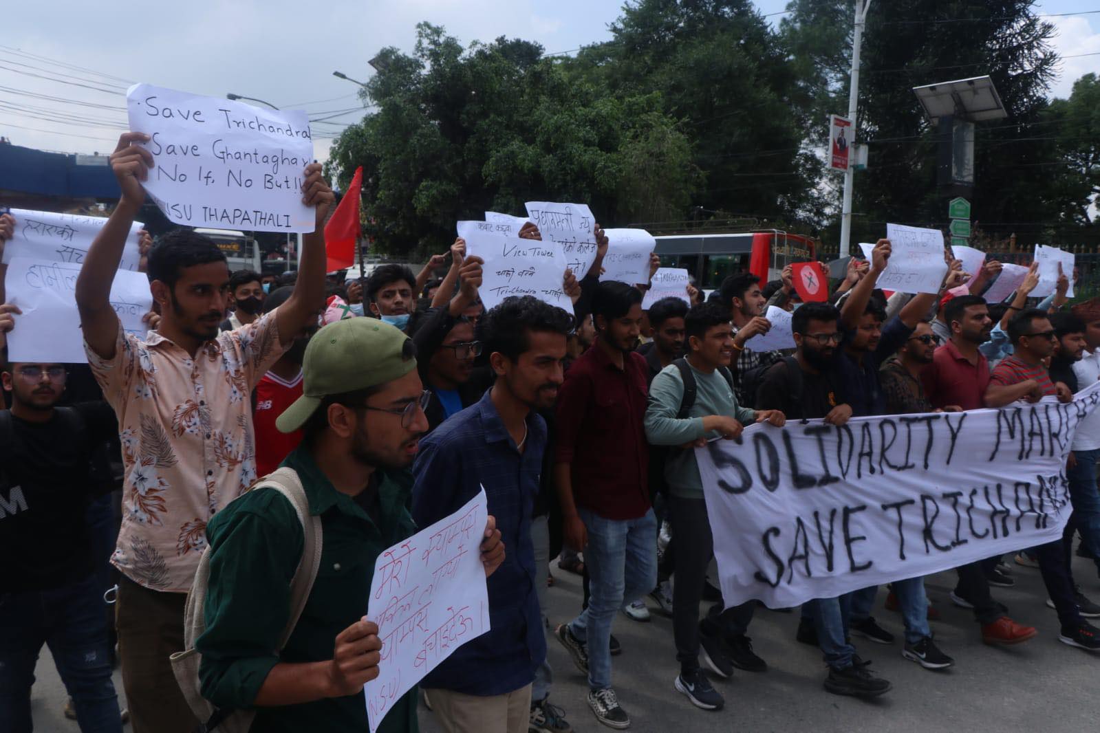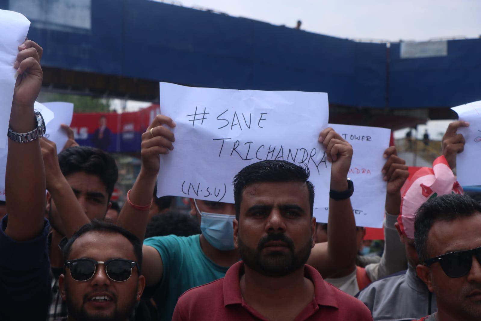 विभिन्न कलेजका सहभागी विद्यार्थीहरुले त्रिचन्द्र कलेजको पुनर्निमाण गर्न माग गर्दै प्लेकार्डसहित ¥याली निकालेका हुन् । त्रिचन्द्र कलेजबाट सुरु गरिएको ¥याली रत्नपार्क, जमल, तिनधारा पाठशाला हुँदै पुनः त्रिचन्द्रमै आएर समापन गरिएको थियो ।