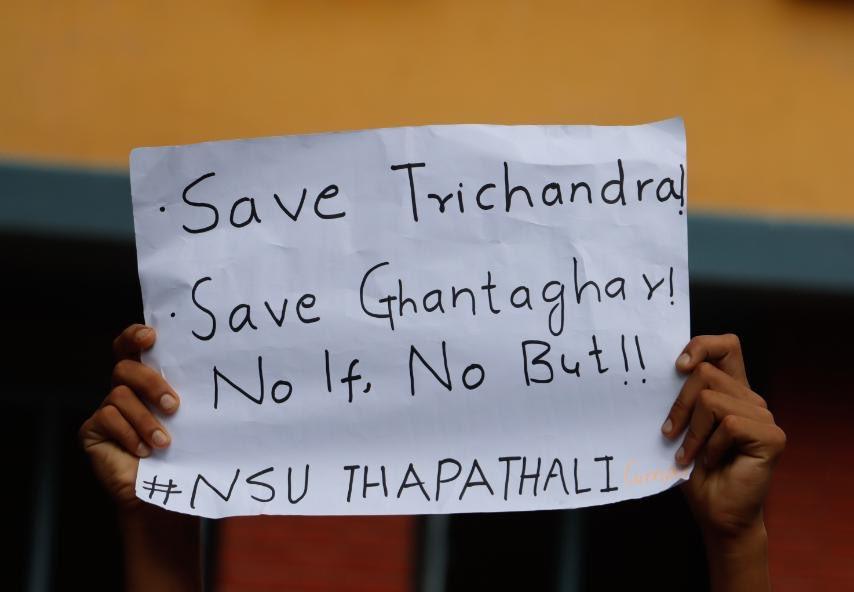 काठमाडौं / नेपाल विद्यार्थी संघ (नेविसंघ)ले जीर्ण त्रिचन्द्र कलेजको भवनको पुनर्निर्माणको माग राखेर प्रदर्शन गरेको छ । नेविसंघ त्रिचन्द्र इकाइको अगुवाइमा शुक्रबार विद्यार्थीहरु प्रदर्शनमा उत्रिएका छन् ।