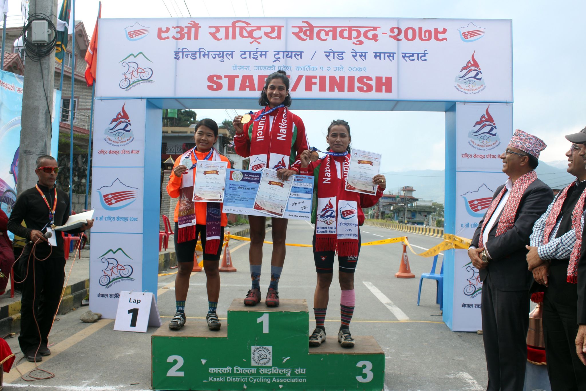 साइक्लिङको रोड रेस मास स्टार्टमा पुरुषतर्फ गण्डकी र महिलातर्फ आर्मीलाई एक–एक स्वर्ण