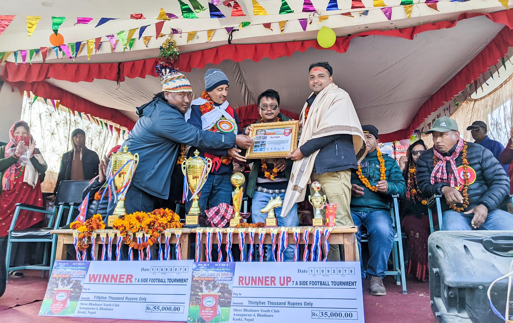 त्यसैगरि धेरै गोलकर्ताका उपाधि भदौरेका सन्दीप गुरुङ, उत्कृष्ट गोलकिपर नौडाँडाका समिर सुवेदी र उत्कृष्ट खेलाडीको उपाधि भदौरेका बिशाल बिकले प्राप्त गरेका छन् । त्यस्तै मैत्रिपूर्ण भेट्रान्स फुटबल प्रतियोगितामा भने ढिकुरपोखरी बिजेता बनेको छ ।