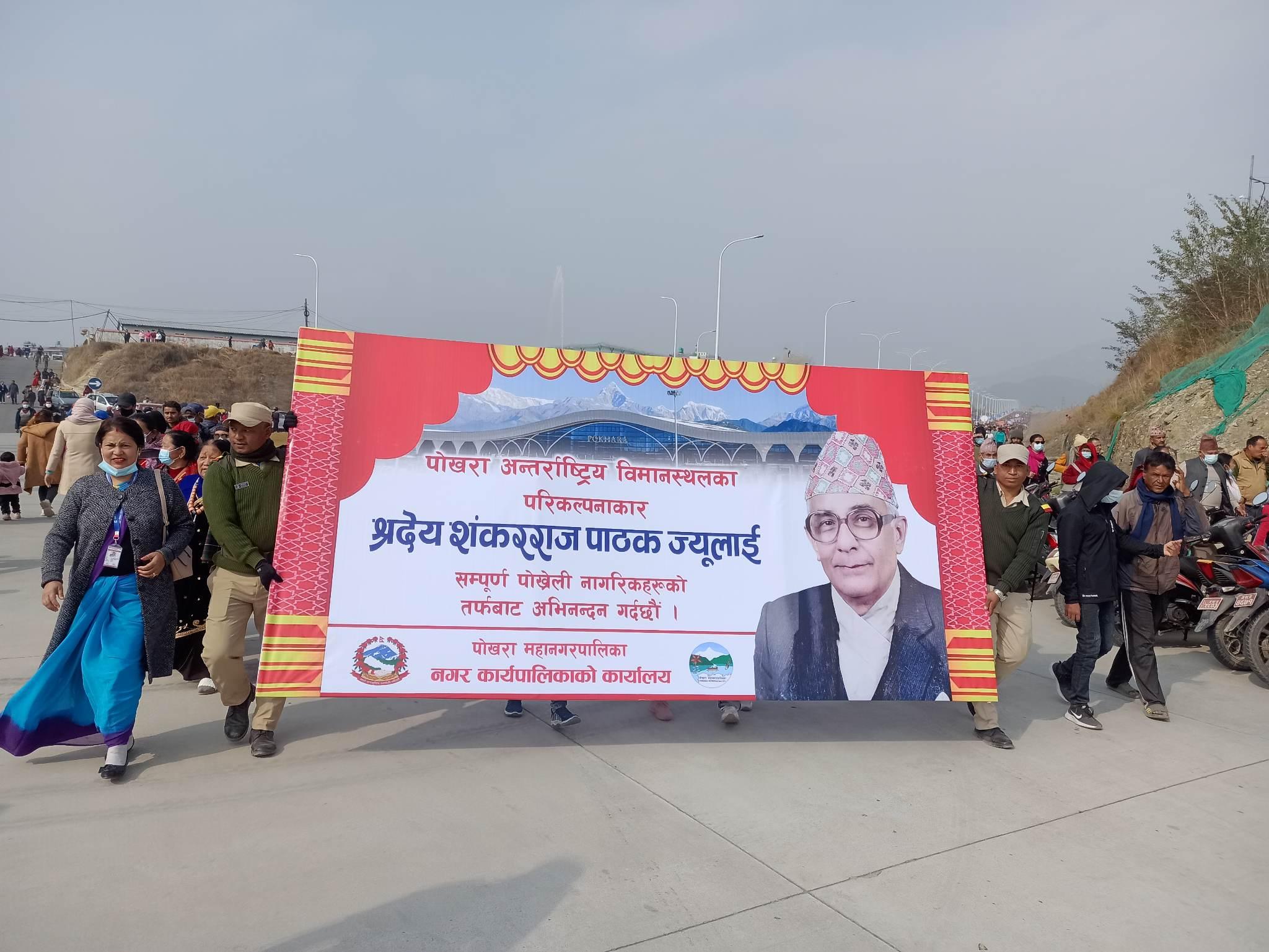 83 पोखरा । पोखरा अन्तर्राष्ट्रिय विमानस्थलको आइतबार उद्घाटन गरिएकाे छ । उद्घाटन कार्यक्रममा यस्ताे देखियाेः फाेटाेः कमल सुवेदी/गन्थन डटकम