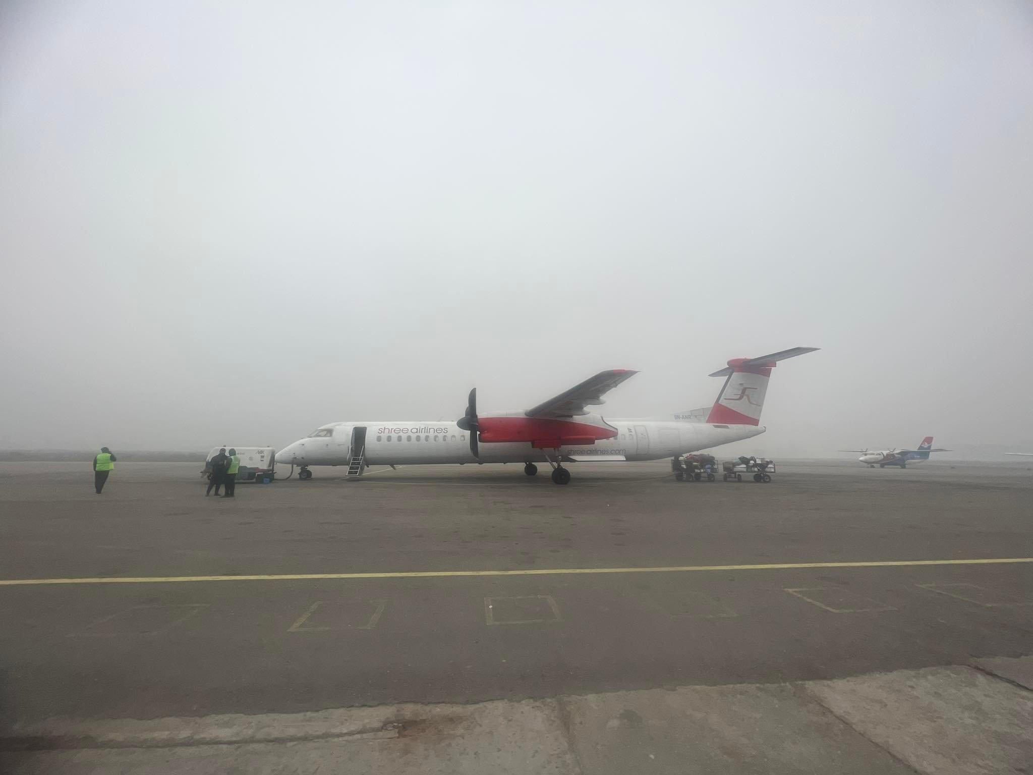 बाक्लो कुहिरो (हुस्सु) का कारण नेपालगन्ज विमानस्थलका सबै उडान ठप्प भएका छन् । मंगलबार बिहान कुनै पनि उडान नभएको विमानस्थलका सुरक्षा अधिकारीले बताएका छन् । काठमाडौंबाट सोमबार आएको जहाजसमेत नेपालगन्ज विमानस्थलमा थन्किएका छन् । उडान नभएपछि विभिन्न जिल्लाबाट काठमाडौं जान आएका यात्रु मर्कामा परेका छन् ।