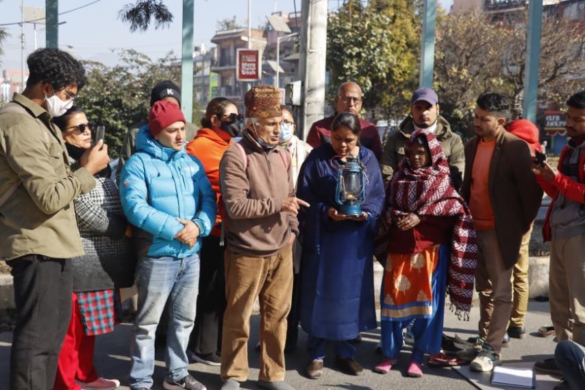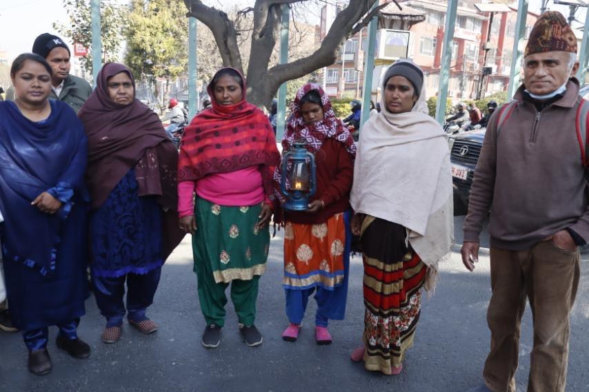 निर्मल कुर्मीको न्यायका लगि आइतबार माईतीघर मण्डलमा आयोजित धर्ना र प्रर्दशन । सो अवसरमा सत्याग्रही डाक्टर गोविन्द केसी, सामाजिक अभियन्ताहरू विमल अर्याल, निर्ग नवीनलगायतको उपस्थिति थियो । उनीहरूले कुर्मीको न्यायका लागि लाल्टिन बाल्दै प्रदर्शन गरेका छन् । बाँकेकी निर्मला कुर्मीको सम्पत्ति हडपेर बेपत्ता पारेकाे आराेप छ ।