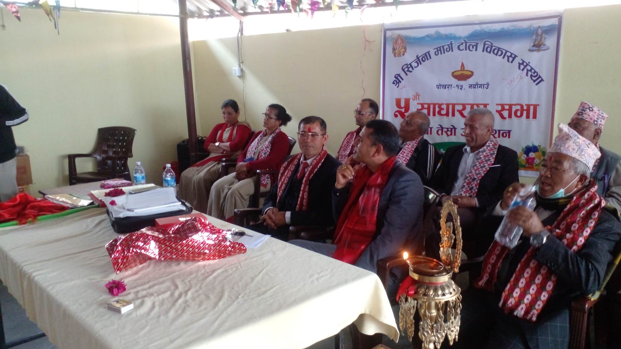 पोखरा । श्री सिर्जना मार्ग टोल विकास संस्था पोखरा १५ नयाँगाउँको अध्यक्षमा पुनः विष्णु प्रसाद तिवारी निर्वाचित भएका छन् । शनिबार भएको संस्थाको पाँचौ वार्षिक साभारण सभा तथा तेस्रो अधिवेशनबाट अध्यक्षमा तिवारी निर्वाचित भएका हुन् ।