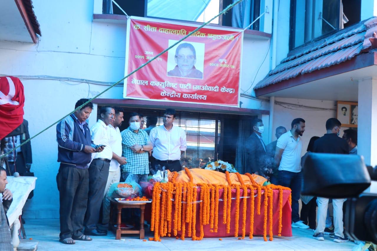 बुधबार बिहान थापाथलीस्थित नर्भिक अस्पतालमा उपचारको क्रममा निधन भएकी ६९ वर्षीया सीताको पार्थीव शरीरलाई श्रद्धाञ्जलीका लागि दिउँसो १ बजेदेखि पार्टी केन्द्रीय कार्यालयमा राखिएको थियो । पार्टी कार्यालयबाट अन्त्येष्टिका लागि उनको पार्थीव शरीरलाई पशुपति आर्यघाट ल्याइएको थियो । नर्भिक अस्पतालबाट दाहालको पार्थीव शरीरलाई पार्टी कार्यालय लगिएको थियो ।