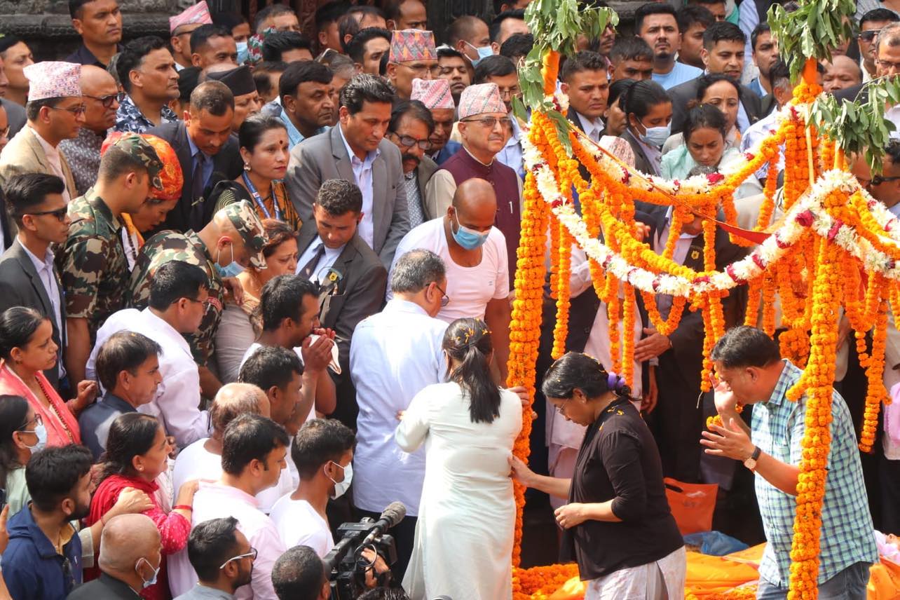 अन्त्येष्टिअघि पशुपति आर्यघाटमै पुगेर दाहाललाई पूर्वप्रधानमन्त्रीहरु कांग्रेस सभापति शेरबहादुर देउवा, एमाले अध्यक्ष केपी शर्मा ओली र एकीकृत समाजवादी अध्यक्ष माधवकुमार नेपालसहित विभिन्न राजनीतिक दलका नेता तथा कार्यकर्ता, मन्त्रिपरिषद्का सदस्य, सांसद, सुरक्षाकर्मीलगायतले अन्तिम श्रद्धाञ्जली दिएका थिए ।