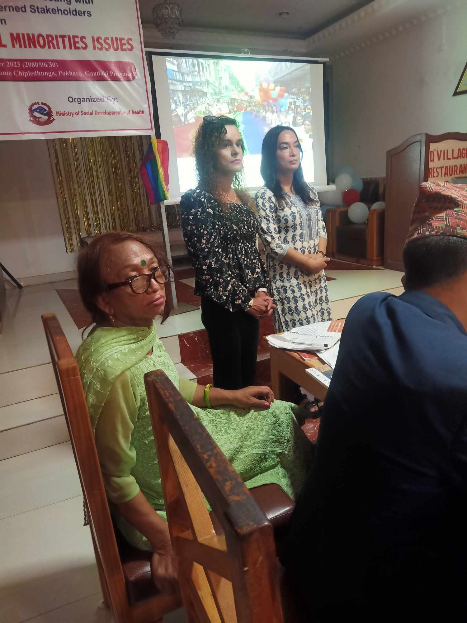 याैनिक तथा लैंङ्गिक अल्पसंख्यक समुदायको विषय, उनीहरुको देश तथा अन्तर्राष्ट्रिय अवस्था र नेपालको कानूनको विषयमा निल हिरा समाजकी कार्यकारी निर्देशक मनिसा ढकालले जानकारी गराईन् । याैनिक तथा लैंङ्गिक अल्पसंख्यक समुदायको मुद्दालाई सबै क्षेत्रमा छलफलको विषय बनाउनुपर्नेमा उनको जोड थियो । साथै उनले समुदायको चुनौतिको विषयमा जानकारी दिएकी थिइन् ।