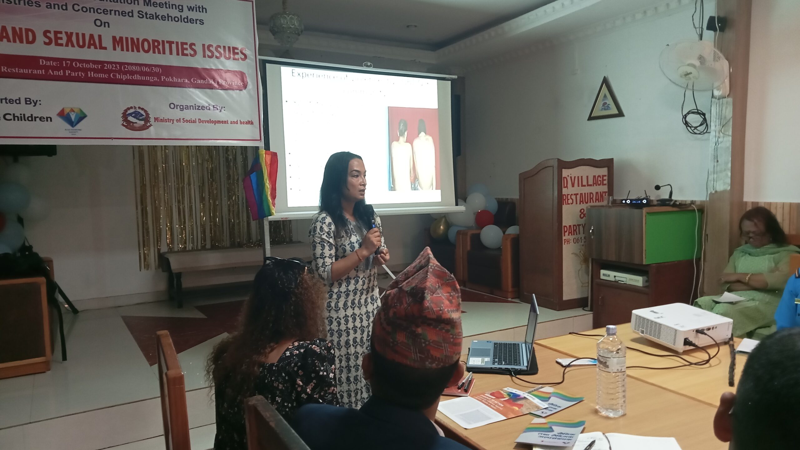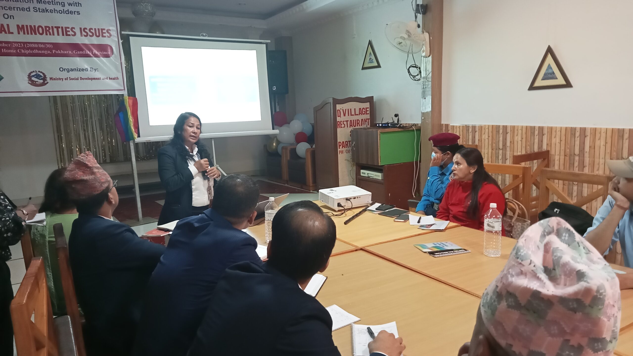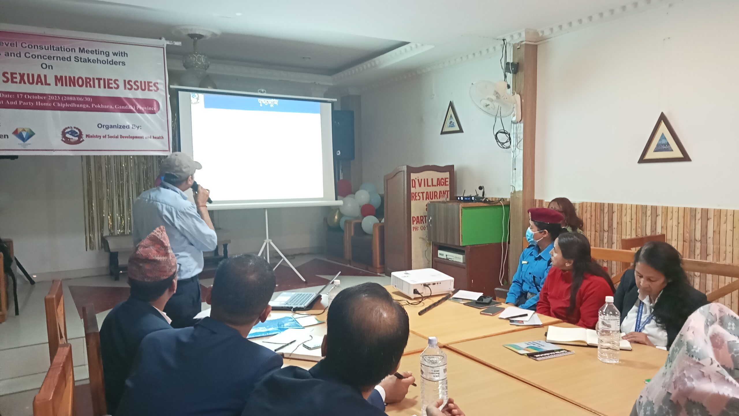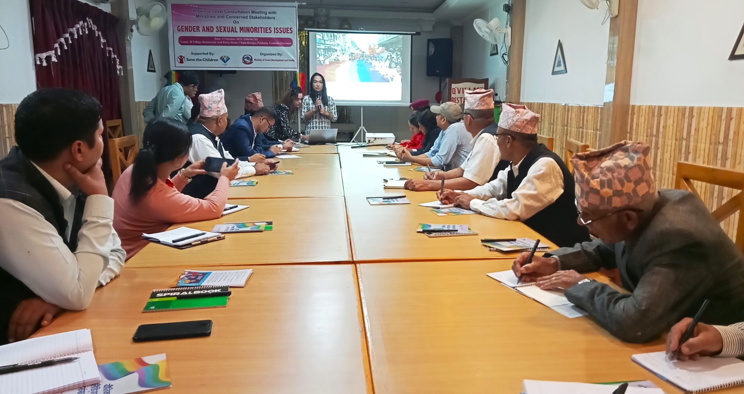 पोखरा । याैनिक तथा लैंङ्गिक अल्पसंख्यक समुदायका विषयमा मन्त्रालय तथा सरोकारवालहरुसँग मंगलबार प्रदेश स्तरिय परामर्श अन्तरक्रिया भएको छ । ब्लु डायमण्ड सोसाइटीको आयोजना, सामाजिक तथा स्वास्थ्य मन्त्रालयको सहकार्य र सेभ चिल्डेनको सहयोगमा कार्यक्रम भएको हो ।